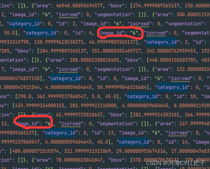 img_id = osp.basename(img_path).split('.')[0]这样就导致以一个点分割了这个图片id,6.8CAXX.jpg被分割乘了6、8CAXX、jpg 三个字符串,所以导致了json文件中出现了image_id为6的情况。