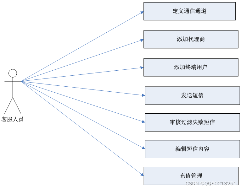 The platform supports multi-level agent functions , Each agent can develop its own customers , Use the platform to maintain their own customer information and customer recharge 、 send out 、 SMS audit and other functions . The platform network topology is as follows :
