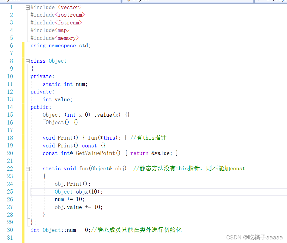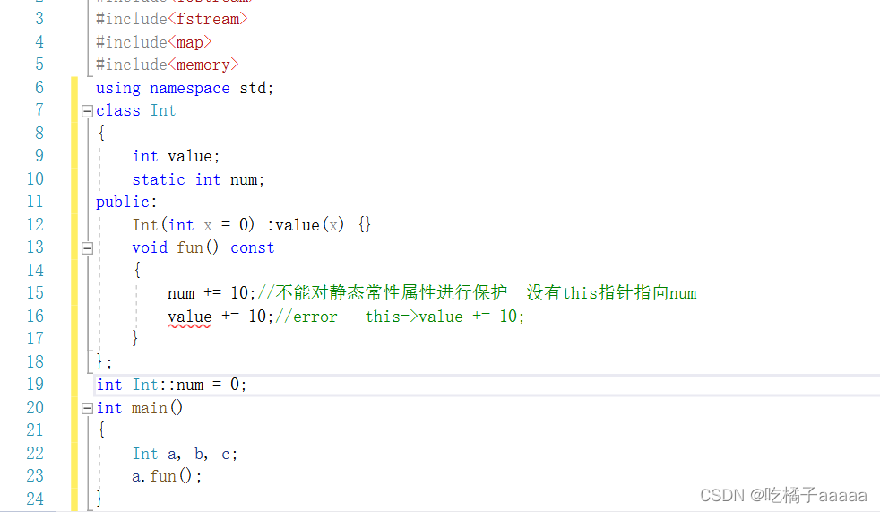 - 在类的成员函数中使用静态数据成员,静态数据成员之前没有this.