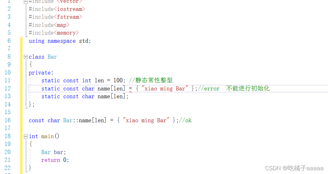 - 类的静态数据成员必须在类外定义,定义时不添加static关键字不能在构造函数的初始化列表中创建。