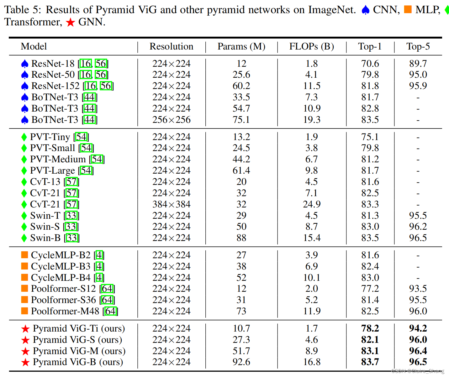 Pyramid architecture takes into account the multi-scale characteristics of images , With the deepening of the layer , Extract features with decreasing spatial size , Such as ResNet[16] and PVT[54]. Four versions of pyramid have been built with advanced design ViG Model . See table for details 2.