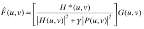 among γ It's a parameter , It can be done to γ Make interactive adjustments , It can also be calculated iteratively .P(u,y) It's a matrix p(x,y) = [0, -1, 0; -1, 4,-1; 0, -1, 0] The Fourier transform of . Compared with Wiener filter , Every image applied to it can produce the best results .