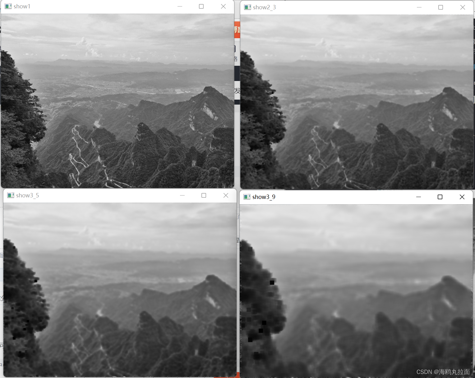 This operation can use a size of mxn A spatial filter to achieve , All coefficients of the filter are of their values 1/mn. Mean filtering smoothes local changes in an image , Although the results are blurred , But it reduces the noise .