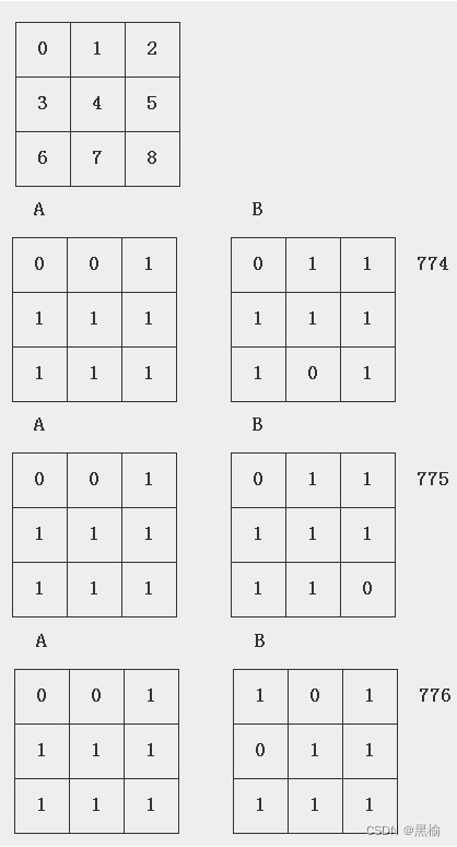 (A,B)---m*n*k---(1,0)(0,1)