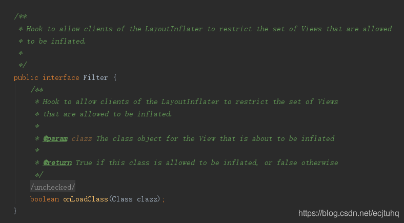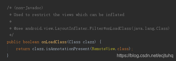 It is not difficult to see from the notes ,Filter Class is used to restrict and filter View Of . Not all of the above View Can be used as a remote view , If it is listed above View, be onLoadClass(Class clazz) return true, Otherwise return to false.