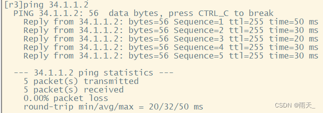 [r3]ip route-static 0.0.0.0 0 34.1.1.2