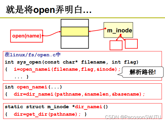 具体的,目录解析就是 open(/xx/test.c) 打开文件的具体代码实现;