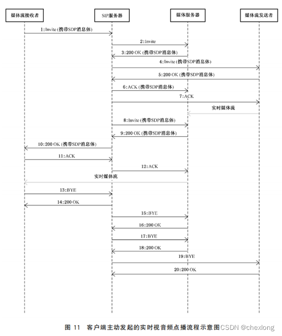实时视音频点播,主要由两部分组成:基于SIP的信令交互和基于RTP/RTCP的媒体流传输。整个过程比较复杂,本节主要介绍基于SIP的信令交互及实战对接中碰到的问题和解决思路。