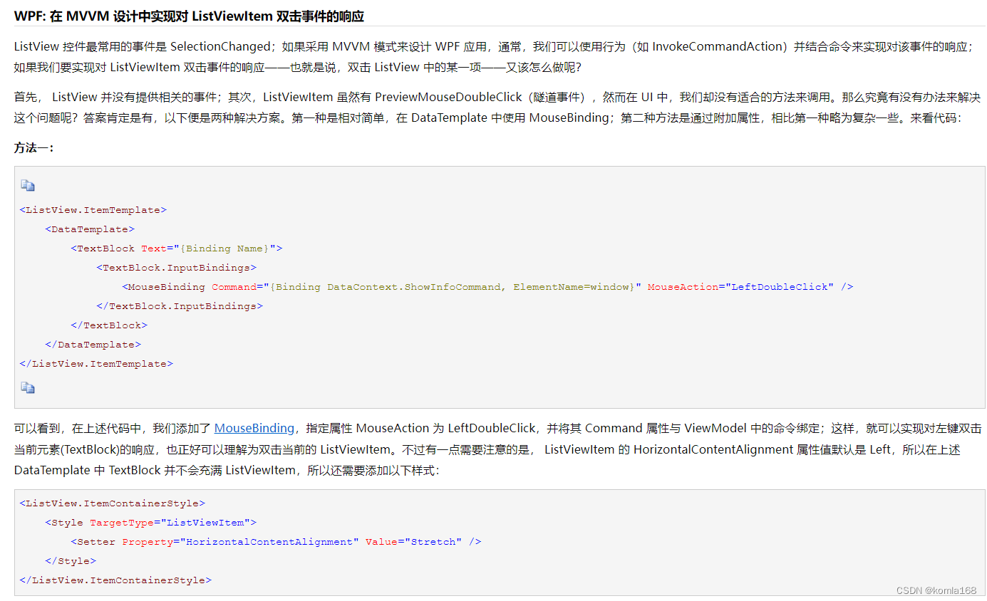 3.4 WPF: 在 MVVM 设计中实现对 ListViewItem 双击事件的响应 - WPInfo - 博客园