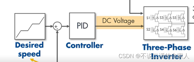 上述已经完成了对电机旋转的基本控制,但仍旧达不到我们想要的按既定目的速度运行,改变速度就要改变电压大小,因此我们需要控制电压的大小,我们可以采用适当的闭环控制来进行,通过期望速度与实际速度之间的差异输出再加上pid控制器调整,控制电压的大小使得电机运转速度达到期望速度,这一部分基本上也都是属于算法控制的,包括霍尔传感器的6个逻辑控制。