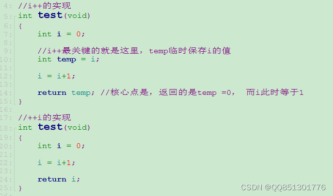 Combined with the first part : give an example i++ Return to temp, ++i return i, Just to distinguish