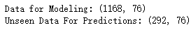 - Original Data: Show the original shape of the dataset . In this case (1168, 76) Express 1168 A sample and 76 Features , Include the target column .