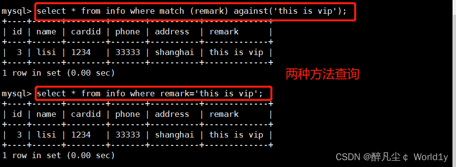 SELECT * FROM 表名 WHERE MATCH(列名) AGAINST('查询内容');