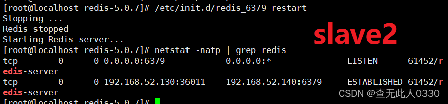 netstat -natp | grep redis Check whether the master and slave servers are connected