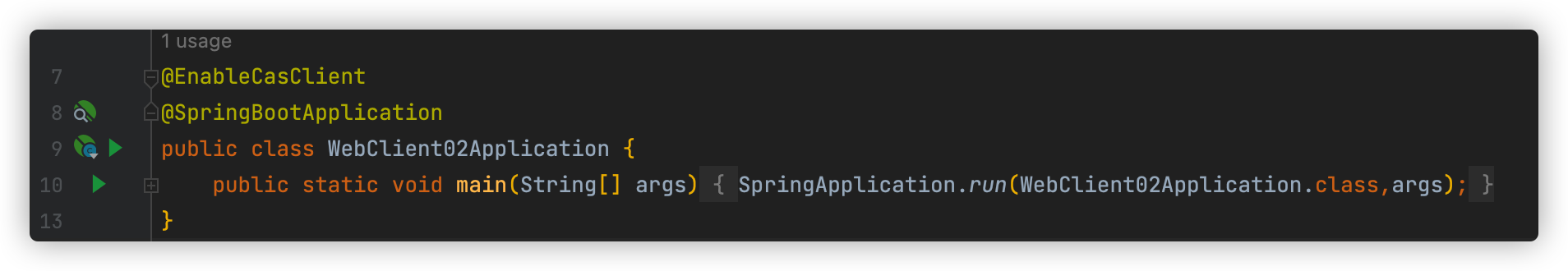 在 SpringBoot 启动类上添加 @EnableCasClient 开启 CAS