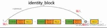 and identity_block It's very simple ( Here's the picture ) It's just one side , Corresponding to all solid lines . When the size of input and output 、 When the number of channels does not change before and after , The input can be added directly to the output .