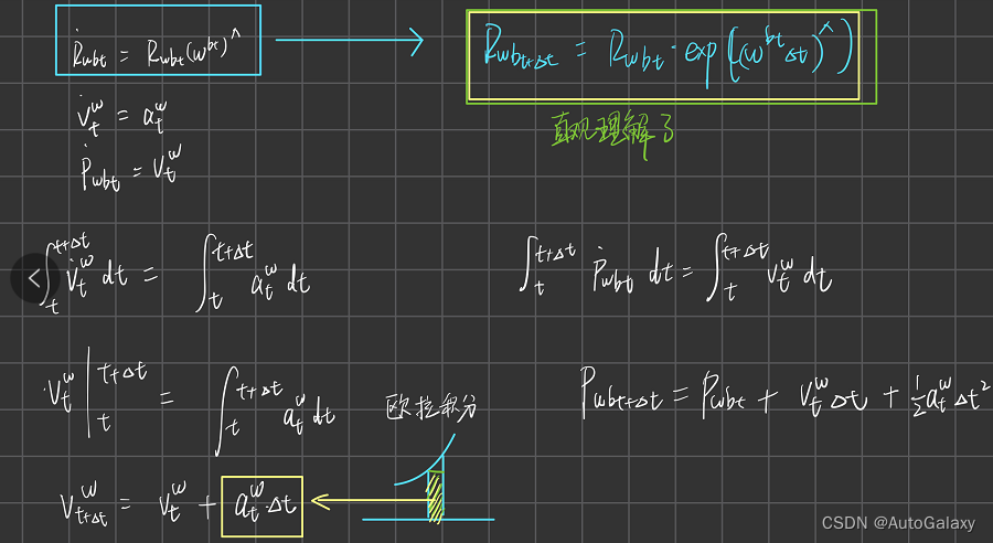积分,有下式成立(注意,姿态更新部分你仅仅只是直观理解,更具体的推导证明估计得看惯性导航那本书,目前本人看不太懂)