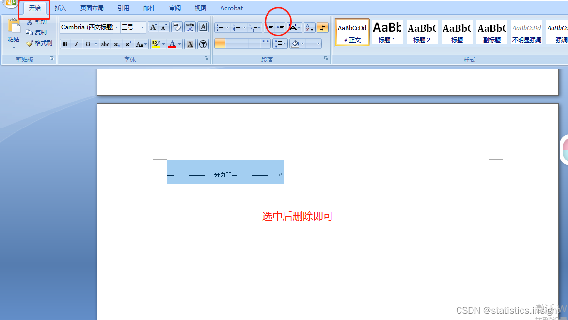 方法二,文字段落后的空白页删除