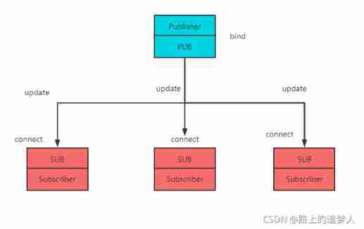 In this model , The publisher only sends data in one direction , And don't care whether all the information is sent to the subscriber . If the publisher starts publishing information , The subscriber is not connected yet , This information is discarded directly . But once the subscriber is connected , There will be no loss of information . Again , The subscriber is only responsible for receiving , Without feedback . If the publisher and subscriber need to interact ( For example, confirm whether the subscriber is connected ), Use additional socket Use the request response model to meet this requirement .