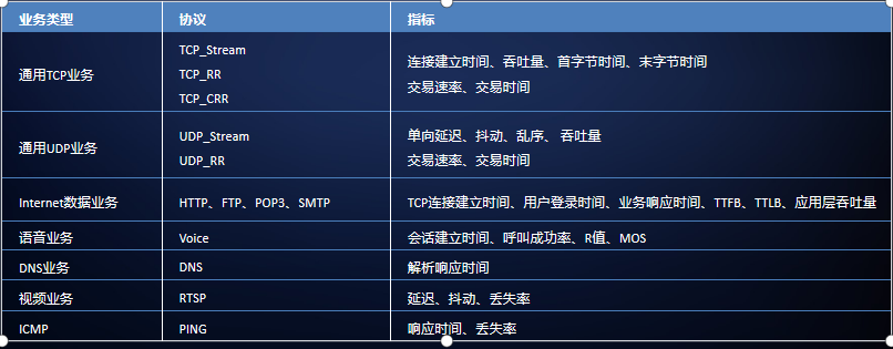 5G End to end slice performance verification , Usability 、 Health 、 Packet loss rate 、 Up and down bandwidth 、 Delay, jitter, etc ;