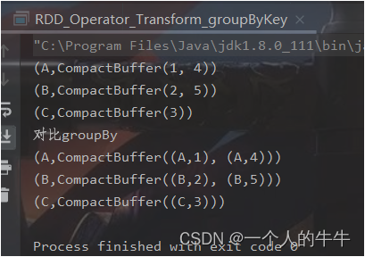 函数说明:在类型为(K,V)和(K,W)的RDD上调用,返回一个(K,(Iterable<V>,Iterable<W>))类型的RDD 。
