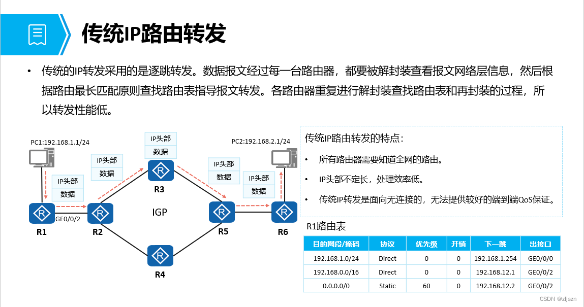 一个数据包从源发送到目的主机,沿途所经过的路由器都必须有通往目的地址的路由,在广域网或者是LSP的路由器是很多路由条目的,如果还跟传统方式一样去查表转发的话,那么报文转发就是显得非常的缓慢