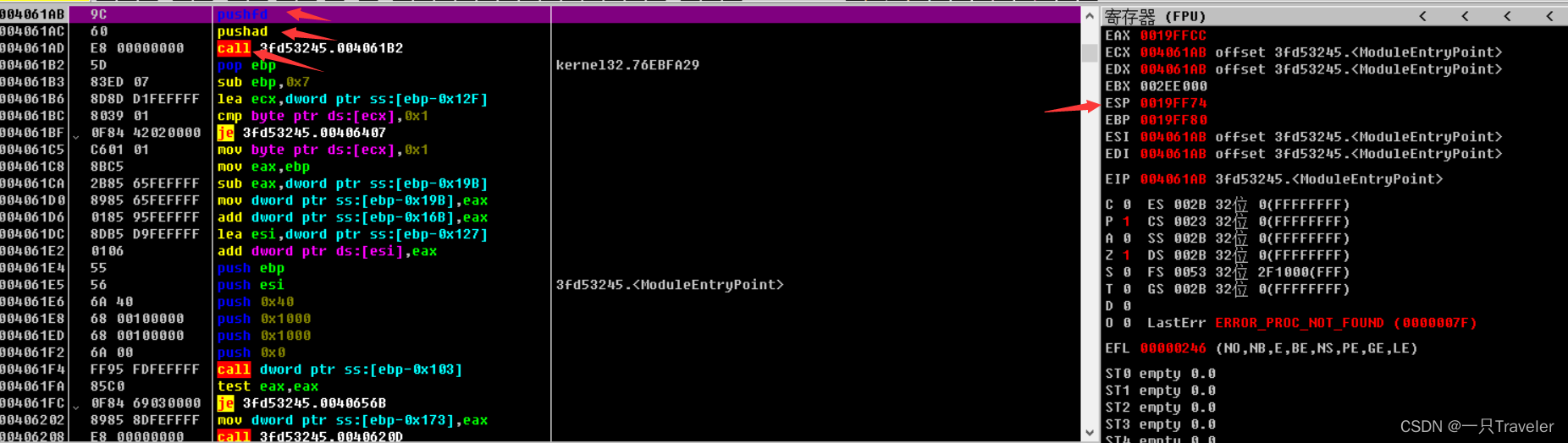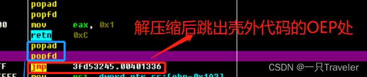 Popfd Below jmp Is to unzip and jump out of the shell code OEP It's about ;