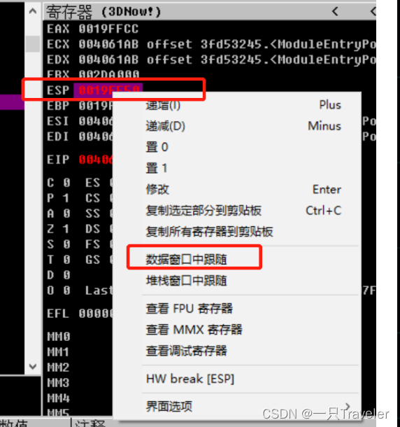2、hr ESP( The key flag is indicated by the next line of code ESP value ( Step through ))