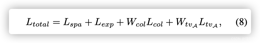 照明平滑度损失。为了保持相邻像素之间的单调性关系,我们在每个曲线参数图 A 中添加了光照平滑损失。光照平滑损失 L tv A 定义为: