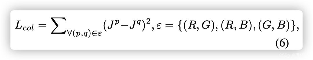 其中J ^p 表示增强图像中p通道的平均强度值,(p,q)表示一对通道。