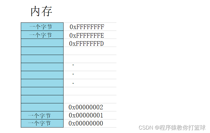 So let's analogy to the computer ,CPU The basic unit of addressing in memory is bytes , stay 32 Under the machine , Can identify at most 4G Physical memory , since CPU Addressing is in bytes , But the memory is big , So it can be regarded as a set of many bytes :