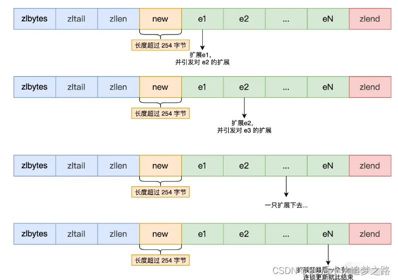 When we talked about compressing the list , I also mentioned the shortcomings of compressed lists , Although compressed lists save memory overhead through a compact memory layout , But because of its structural design , If the number of saved elements increases , Or the element gets bigger , The compressed list will have 「 Chain update 」 The risk of , Once occurred , Will cause performance degradation .