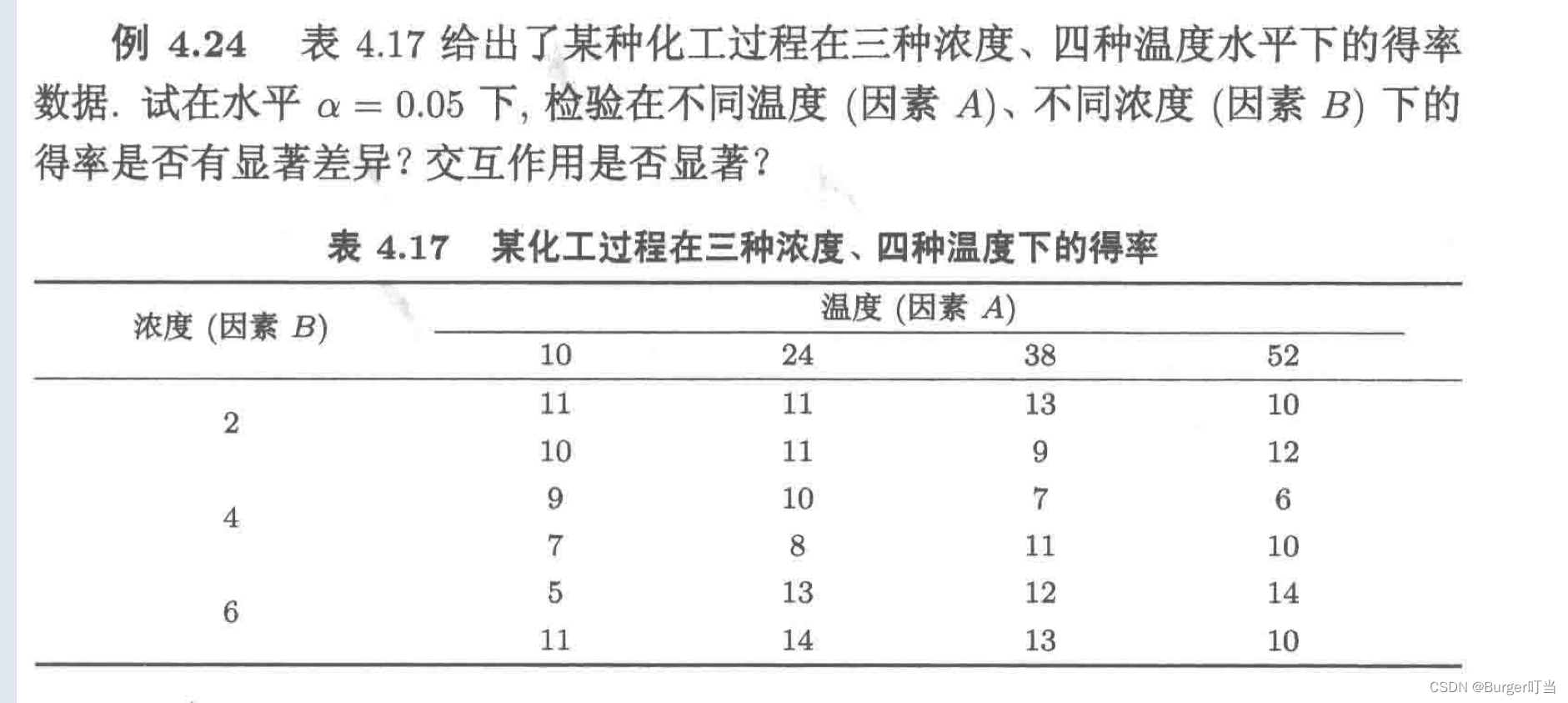 example 4.23( Balanced data ) To investigate 5 Whether the labor productivity of workers is the same , Recorded each person 4 Days of production , Determine whether there is a significant difference in their productivity .