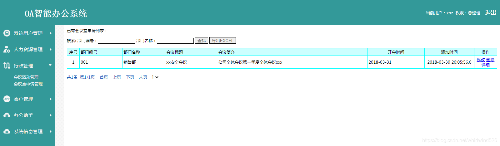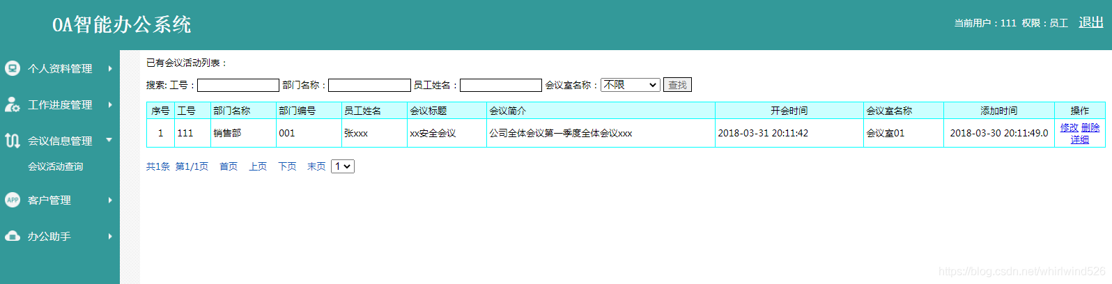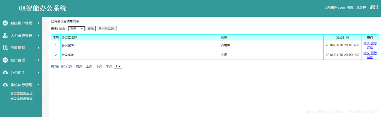 It mainly contains conference room information 、 Conference room information query two sub modules