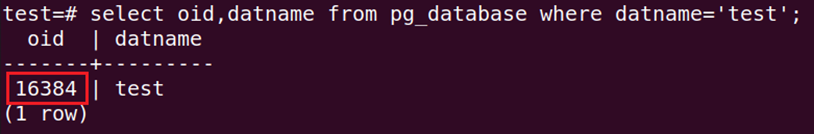 #select oid,datname from pg_database where datname='test';