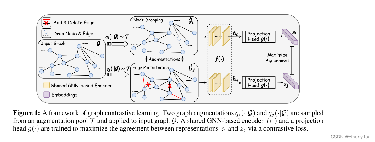 Generalized on graph structure data 、 Transferable and robust representation learning is still the current graph neural network (GNNs) A challenge . And convolution neural network for image data (CNNs) Different , Yes gnn Self supervised learning and pre training are less explored . In this paper , We propose a graph contrast learning (GraphCL) Framework to learn the unsupervised representation of graph data . First , We have designed four kinds of graph augmentations to include various priors . then , We systematically studied the effects of various combinations of graph enhancement on multiple datasets in four different settings : Semi supervision 、 Unsupervised 、 Transfer learning and counter attack . It turns out that , Even if you don't tune the extension , And don't use complex GNN framework , our GraphCL Frameworks can produce generalizations that are similar or better than the most advanced methods 、 Graph representation of transferability and robustness . We also study the influence of extended range and pattern of parameterized graph , Further performance improvement was observed in the preliminary experiment .