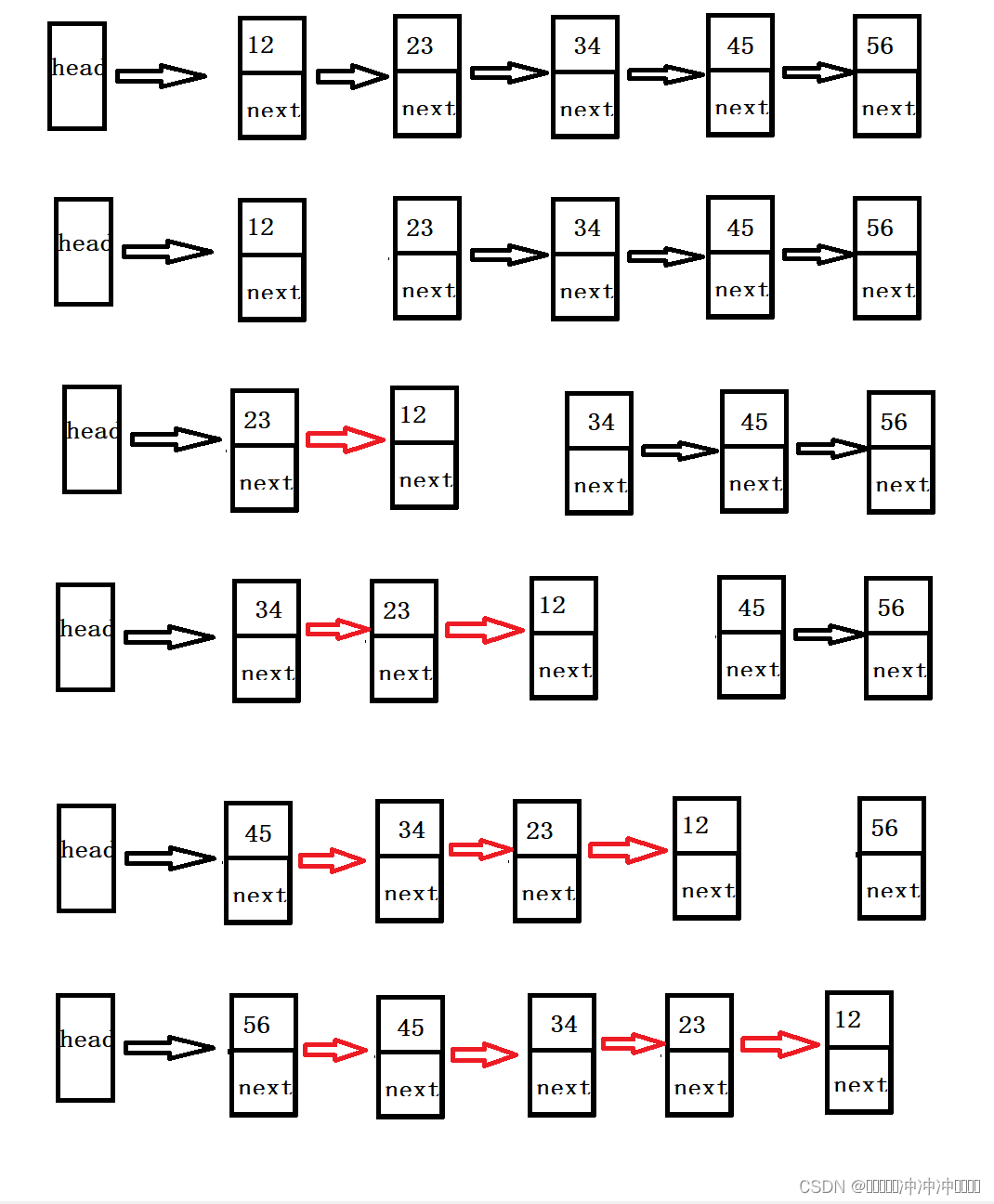 };Ideas : For linked list inversion , The most common method is to insert and reverse the nodes all the time next 了 , These two methods have two cases respectively , The linked list has head nodes and the linked list has no head nodes . Straight in : Straight head insertion is to remove the nodes of the original linked list from front to back, and then reconnect to the head node , Because the first inserted node is always behind the linked list , So after re inserting the head , The linked list is inverted .