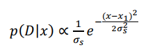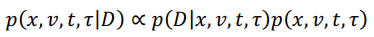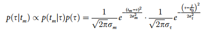 The likelihood is p(tm|τ), To obey the mean is τ The standard deviation is σm Gaussian distribution of , Then the posterior distribution can be calculated by Bayes rule :