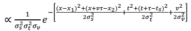 among ,l Is the distance between two stimuli ,ts Is the sample interval ,te The estimated time interval for the subjects ,σs and σt Are the standard deviations of perceived spatial and temporal information respectively ,σv Is the standard deviation of a priori velocity .