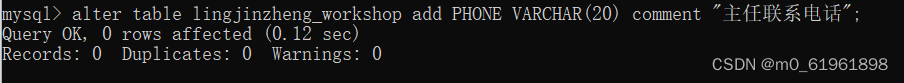 alter table lingjinzheng_workshop add PHONE VARCHAR(20) comment "主任联系电话";