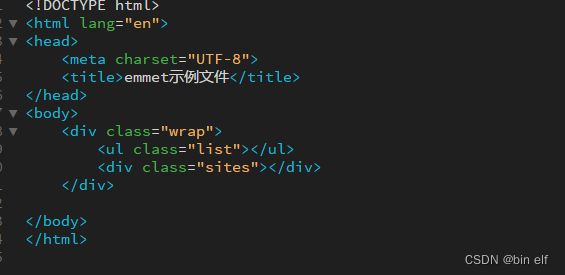 After that body It can be used internally emmet Syntax creation html The grammatical framework of ( All need buttons TAB Key generation )