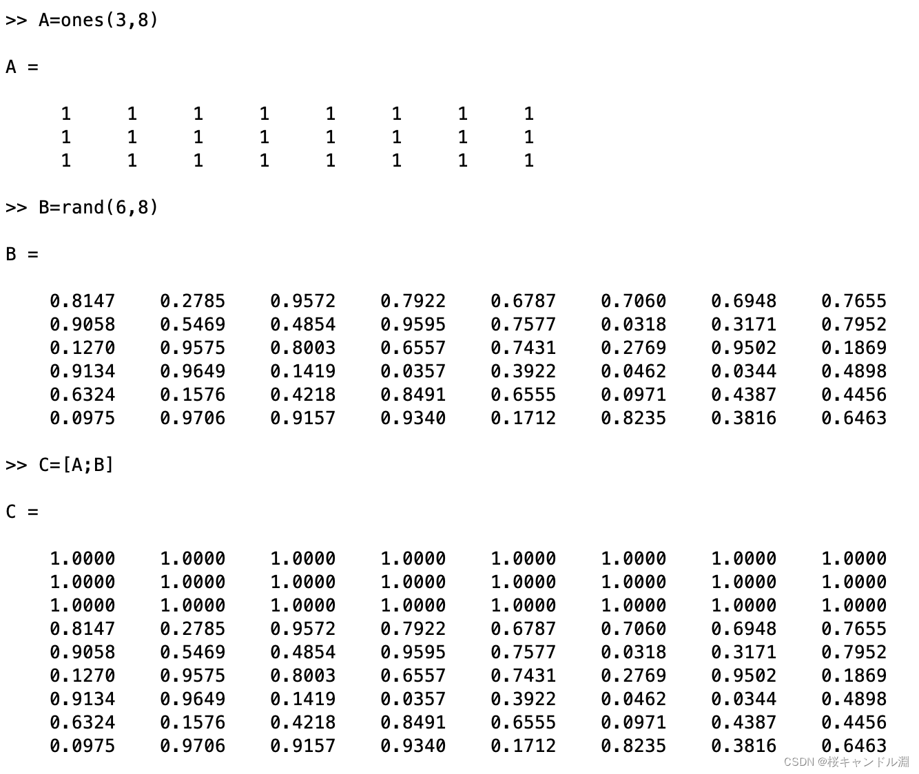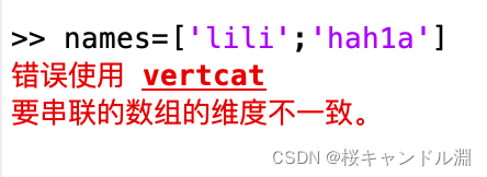 We use semicolons to separate when creating a matrix , But we must ensure that the number of elements in each row is the same .