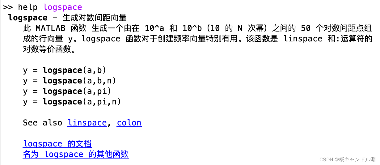 linspace The first parameter is zero Initial value , The second value is the end value , The third value is the number of elements in the generated vector, which is a vector constructed in an equal interval way
