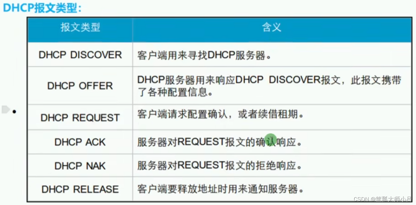 常见为前四种,地址已经租出去,但是有其他主机想要该地址通过ipconfig /release可以抓取到DHCP RELEASE包