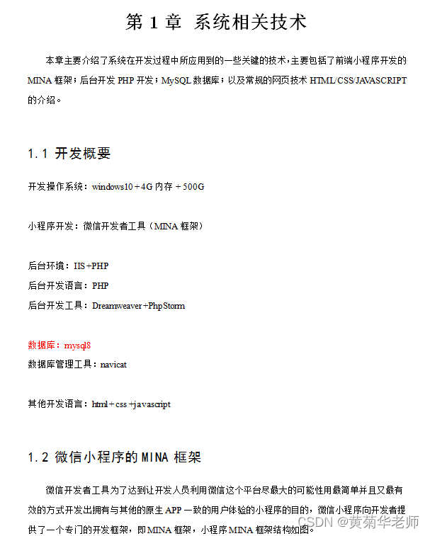主要安介绍了系统在开发过程中所应用到的一些关键的技术,主要包括了前端小程序开发的MINA框架;