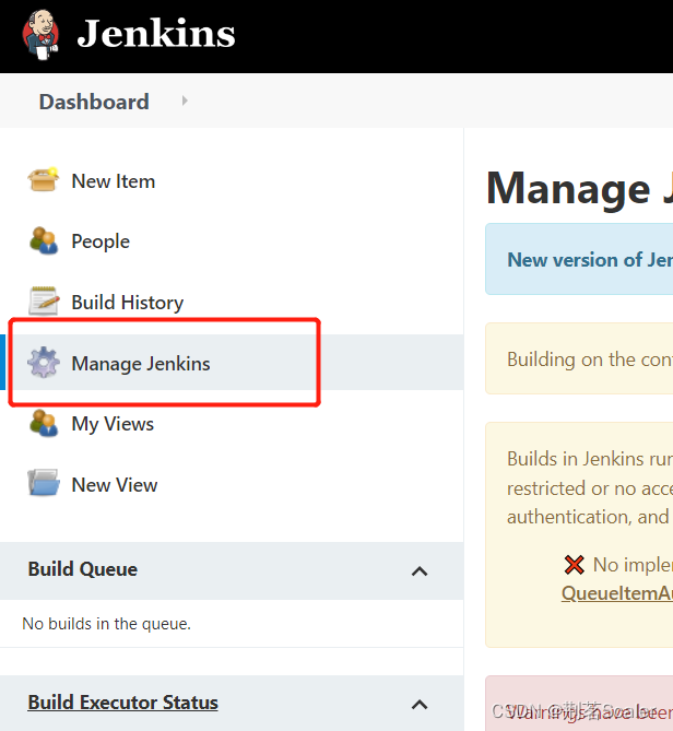 After the installation , stay Manage Jenkins Can be found in : Different versions have different locations , Some versions are listed in the left-hand menu .