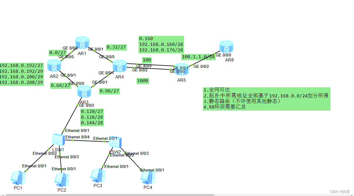 (2). The addresses required in the topology are all based on 192.168.0.0/24 Divide the income