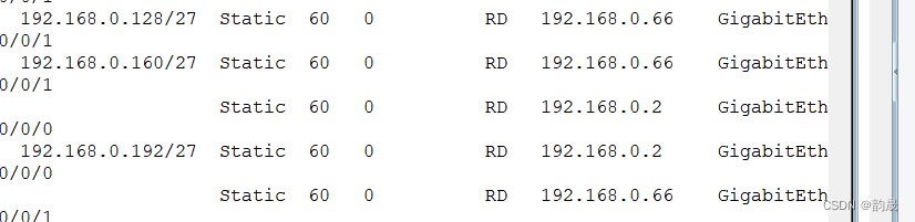 (4) This experiment requires the use of static , So make static configuration , The whole network can reach