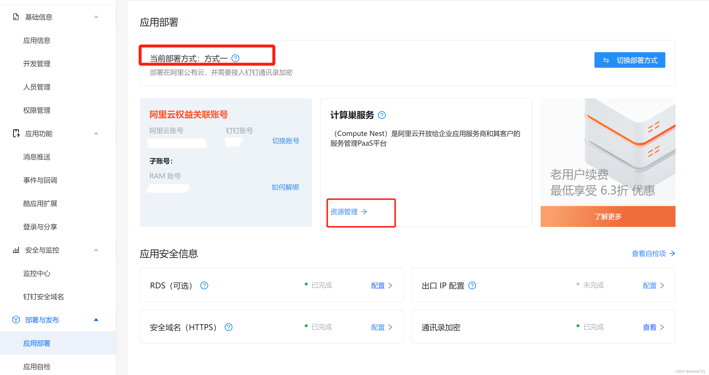 2、 Click on 【 Deployment and release 】-【 Application deployment 】- Deployment mode selection , Compute nest deployment .