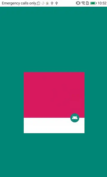 <View android:id="@+id/bottom" android:layout_width="match_parent" android:layout_height="50dp" android:background="@color/colorAccent" app:layout_constraintEnd_toEndOf="parent" app:layout_constraintStart_toStartOf="parent" app:layout_constraintTop_toBottomOf="parent" />